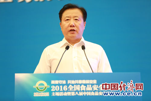 農業部廣德福:推進“瘦肉精”等7項專項整治行動,2016全國食品安全宣傳周主場活動暨第八屆中國食品安全論壇6月14日在京舉辦。中國食品安全論壇為全國食品安全宣傳周主題活動之一,邀請有關部門負責人及嘉賓圍繞宣傳周主題演講,并有多個分論壇活動。圖為農業部農產品質量安全監管局巡視員廣德福。中國經濟網 裴小閣/攝