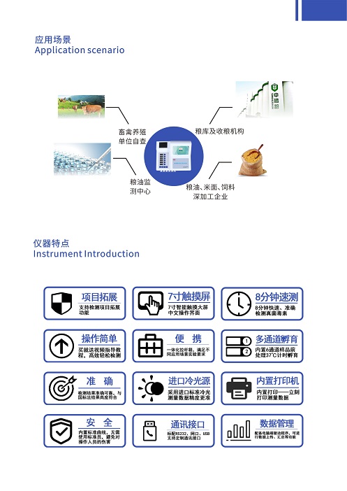 為了保障食品安全,日常監(jiān)管檢測食物中黃曲霉霉毒素是否超標(biāo)這一工作尤為重要和必要。深芬儀器CSY-YG701黃曲霉毒素快速測定儀通過檢測線熒光定量卡中的熒光強弱程度,定量分析待檢樣品中黃曲霉毒素B1殘留含量;能夠快速定量檢測花生、牛奶、玉米、小麥、大米、大麥、小米和燕麥等谷物、飼料、面粉、食用油、調(diào)味品中黃曲霉毒素B1,適用于糧庫收糧檢測、糧油監(jiān)測中心、糧油飼料生產(chǎn)加工、食品加工貿(mào)易、畜禽養(yǎng)殖戶自查、工商質(zhì)監(jiān)部門用于市場快速篩查等。