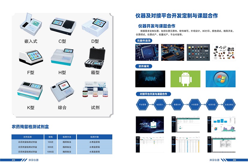 2.加強對食品安全的監測做好監督管理工作。在超市或者市場設立多個檢測點,建立市場級檢測體系,深圳市芬析儀器制造有限公司(深芬儀器)農藥殘留測定儀能夠對蔬菜中農藥殘留的快速檢測,農藥殘留測定儀廣泛應用于各級蔬菜檢測中心、農貿市場、超市、環保機構、蔬菜種植基地、飯店、車載及實驗室等食品安全檢測與監控場所等單位對果蔬中農藥殘留的檢測。
